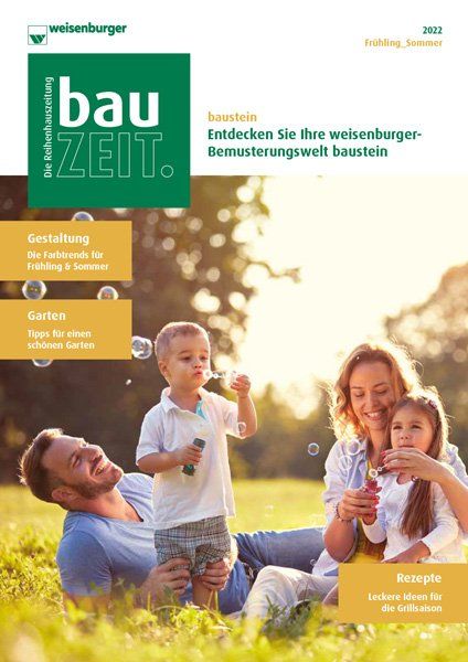 Die Kundenzeitschrift bauZeit informiert Kaufinteressenten über aktuelle Bauthemen, führt in den Bemusterunsgprozess bei weisenburger ein und bietet je nach Jahreszeit Tipps rund um Haus und Garten.
